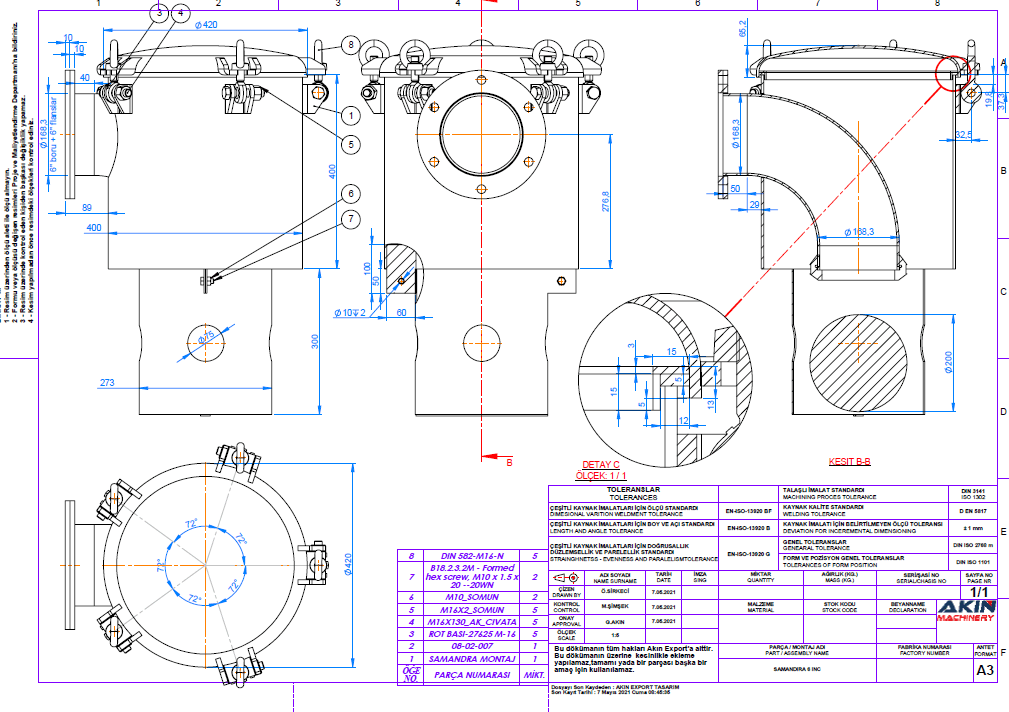 Şamandıralar, vakum hattının başladığı makineye kaynaklanacak şekilde tasarlanmıştır. Paslanmaz çelik, yüzer bilyeli bir "taşma" sistemi ile donatılmıştır. Bu sistem emilen malzemenin (sıvı vb.) tank içerisinde maksimum seviyeye ulaşıldığında vakum hattına girmesini engeller. Şamandıralar, vakum kesici ve emniyet valfleri, basınç göstergeleri ve havalandırma sistemleri ve siklon drenajları gibi çeşitli aksesuarların bağlanmasını sağlayan bir dizi yan kaplin ile donatılmıştır.